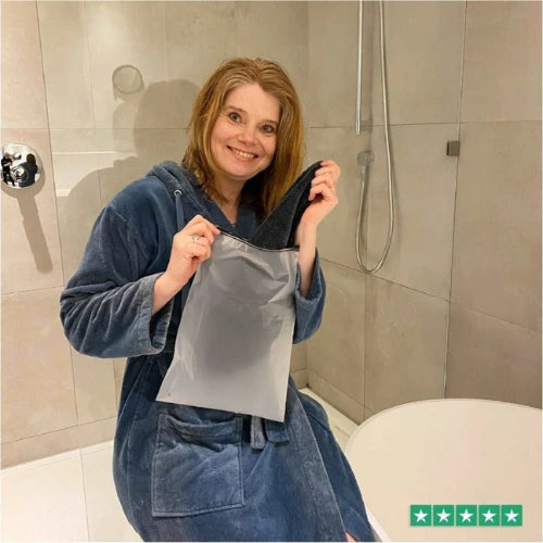 La serviette sèche la douche en un seul passage, un gain de temps énorme après la douche