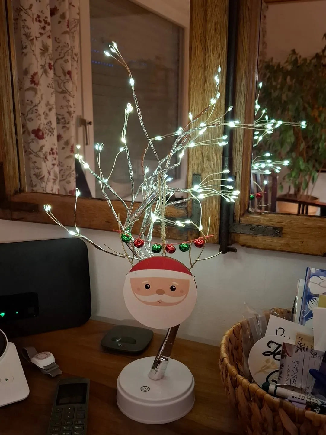 L’autonomie de la batterie est de 3 à 6 mois (selon l’utilisation). L’arbre peut également être alimenté par le câble USB fourni. (Vous pouvez aussi utiliser des piles)